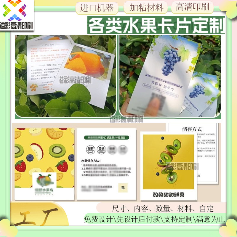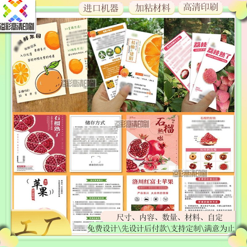 石榴水果礼品介绍卡片定制杨桃装饰烫金卡水蜜桃宣传卡杨梅售后卡
