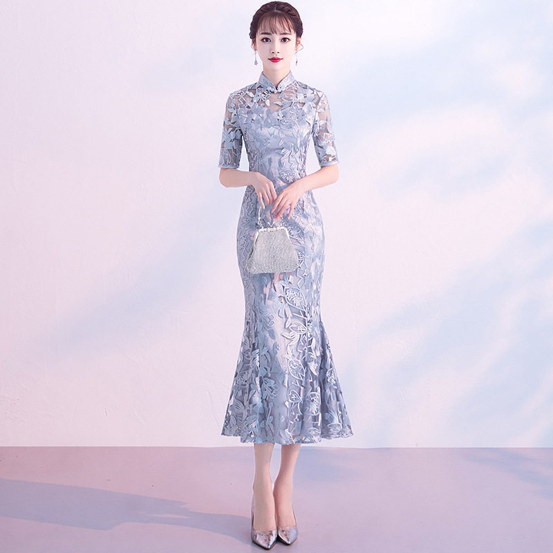 年轻款少女改良旗袍连衣裙2020新款夏季蕾丝中国风日常学生礼服裙