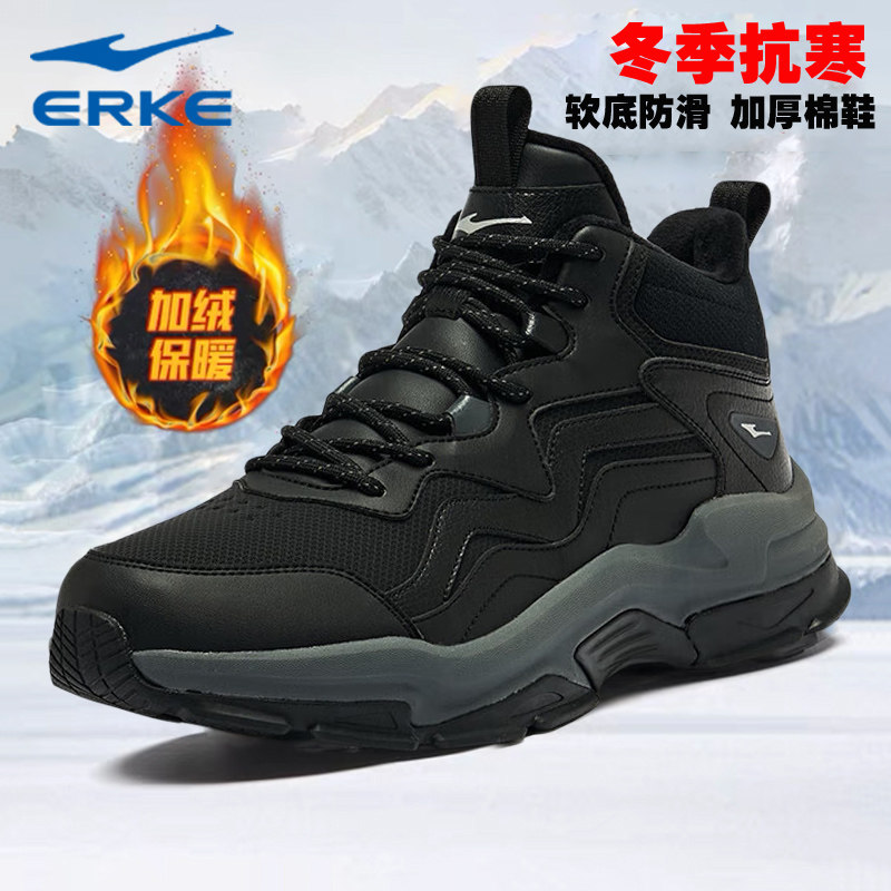鸿星尔克加绒男鞋大棉鞋高帮秋冬男士皮面老爹鞋子旗舰店运动鞋男