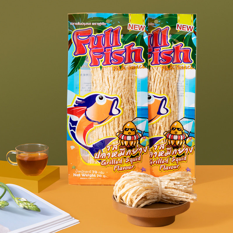 泰国原装进口Fullfish鱼丝香辣烧烤鱿鱼味70克即食网红休闲小零食