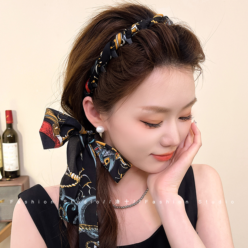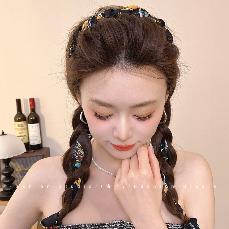 复古飘带发箍带齿编发一体式头箍