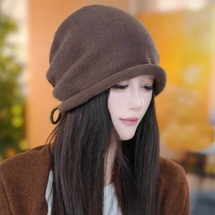 韩系卷边抽绳针织堆堆帽防寒保暖