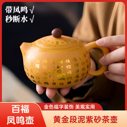 黄金段泥百福凤鸣壶紫砂壶高档家用纯手工大容量紫砂茶壶泡茶专用