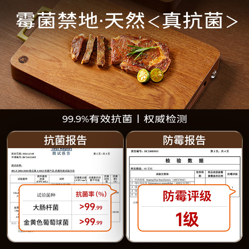 王麻子乌檀木菜板防霉抗菌家用实木砧板厨房专用切菜案板官方正品