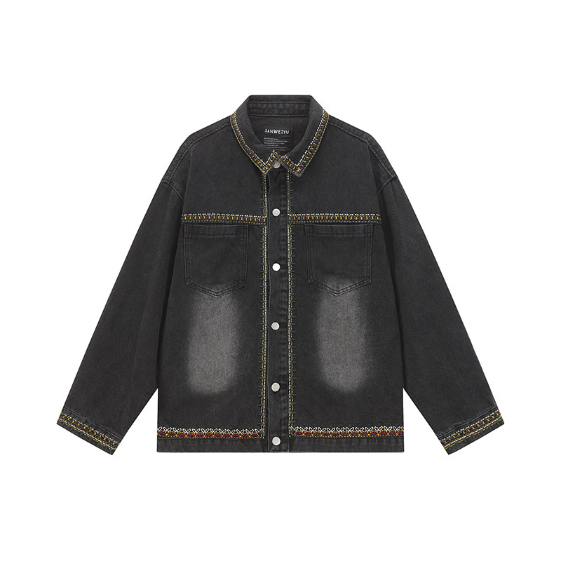 GentryPro牛仔外套男花边刺磨白绣设计2026新款情侣中性潮牌夹克