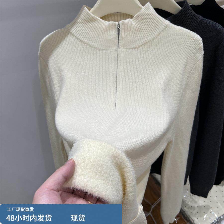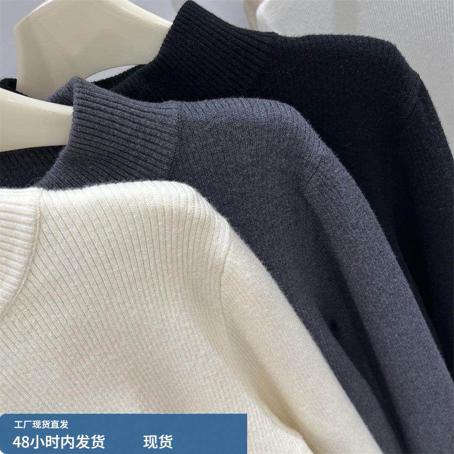 灰色半高领加绒针织打底衫女冬装巨好看内搭大朗毛衣义乌短款上衣