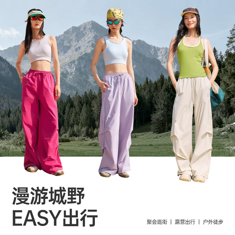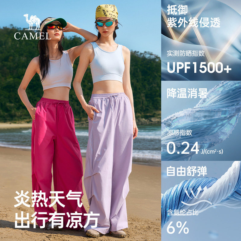骆驼女装运动裤2026春新款紫色凉感防晒速干宽松工装裤休闲阔腿裤