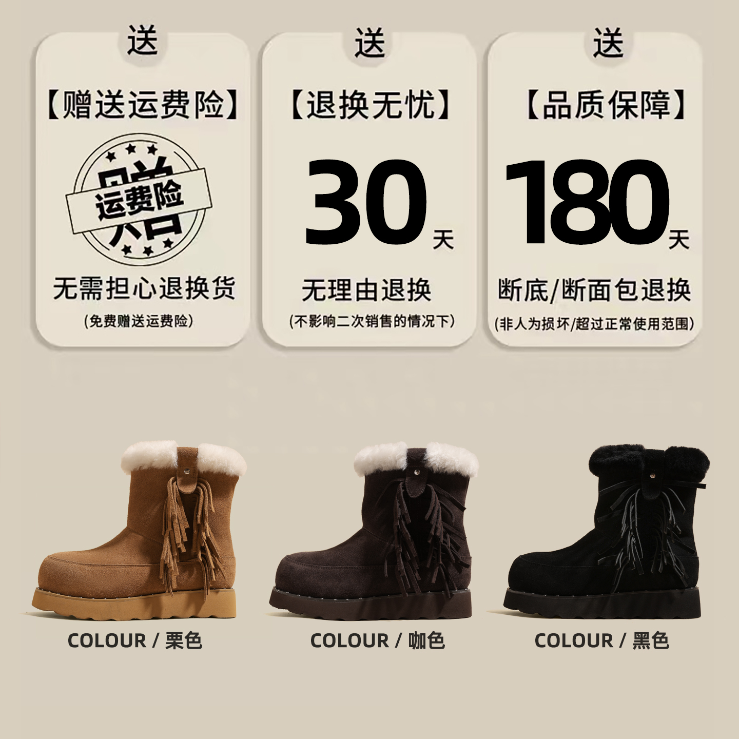 7cm内增高雪地靴女2025新款冬季厚底加绒加厚保暖棉鞋流苏短靴子