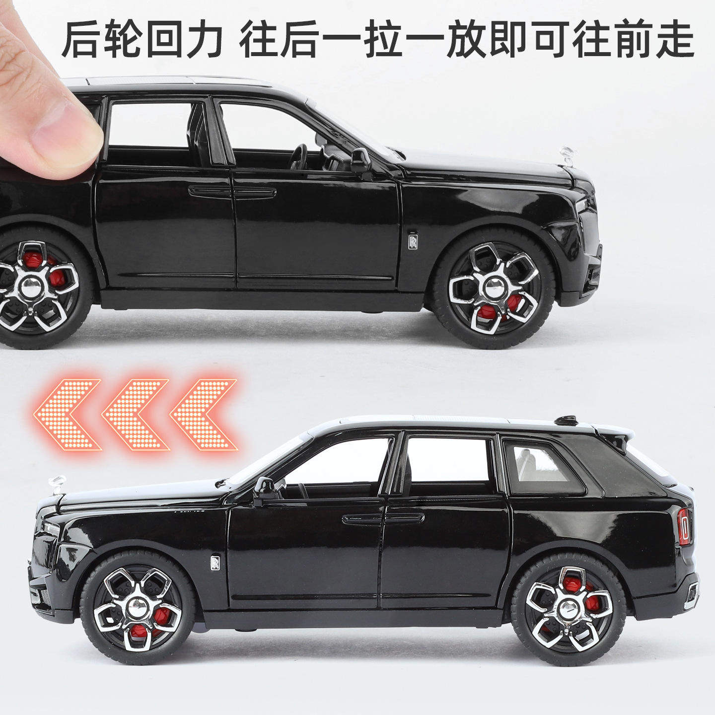 新款(哇噢定制)1:32劳斯库里南合金车模声光音效宝宝益智小玩具