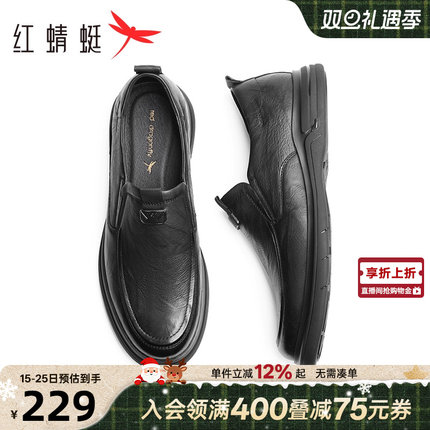 红蜻蜓休闲皮鞋秋季新款男鞋一脚蹬真皮软底男士鞋子中老年爸爸鞋