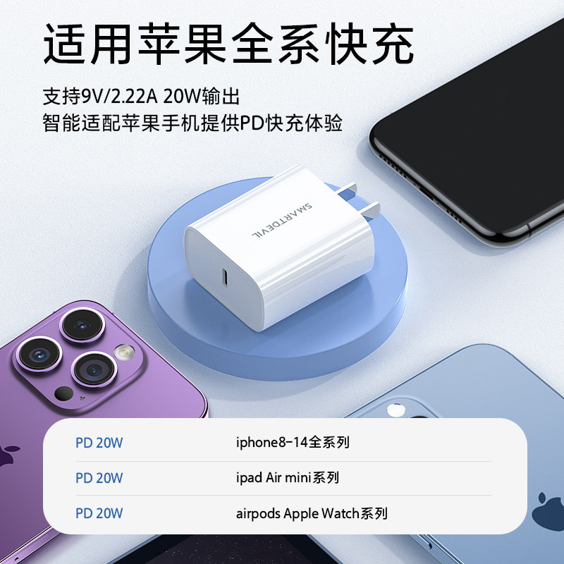 【国家3C认证】闪魔适用于iPhone15/16充电器头PD快充20w苹果17promax手机14数据线13套装ipad平板12插头typC