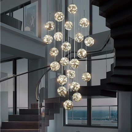 北欧满天星楼梯灯长吊灯复式楼现代简约轻奢别墅loft公寓客厅吊灯