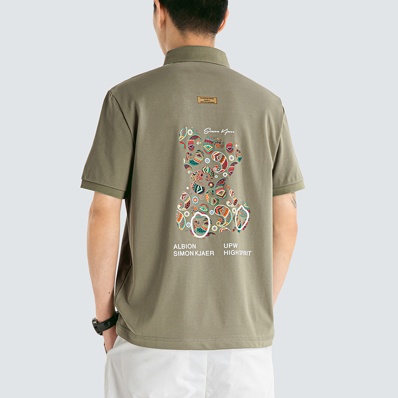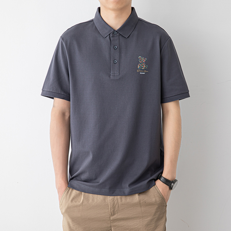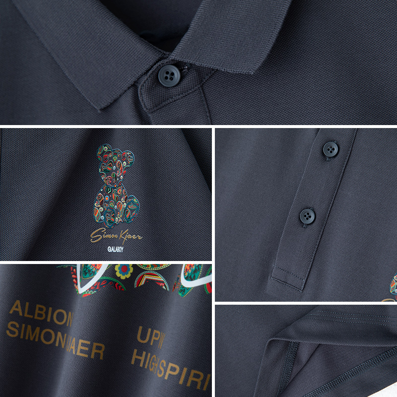 印花短袖POLO衫男士夏季宽松休闲小熊潮牌男上衣翻领短袖T恤男款