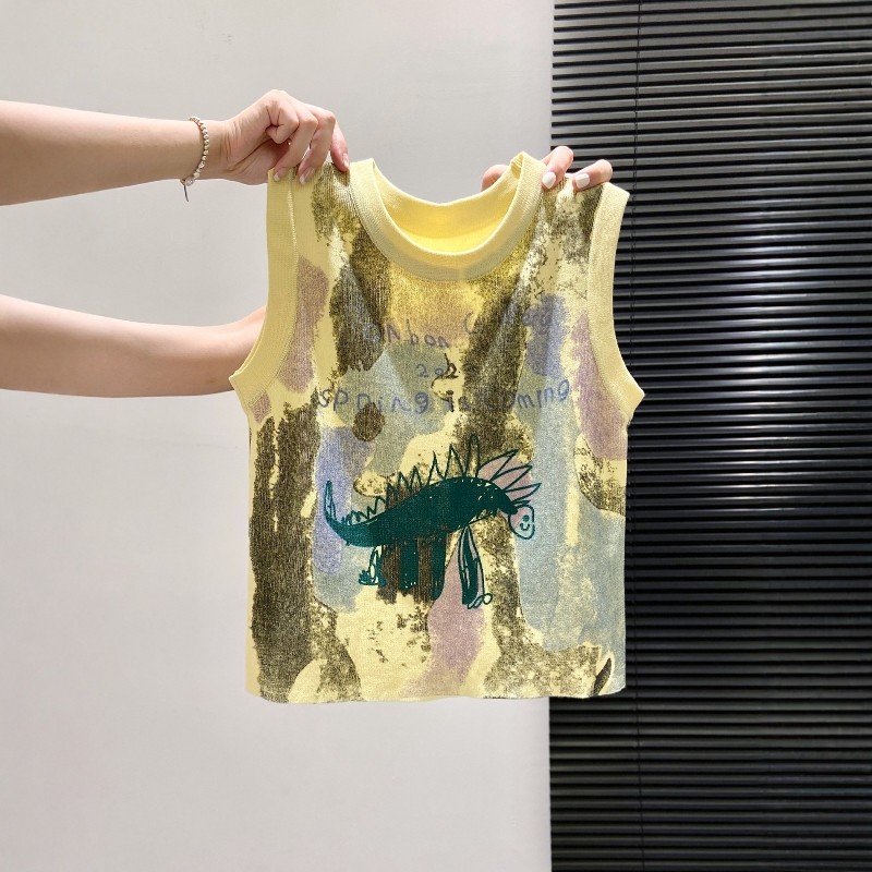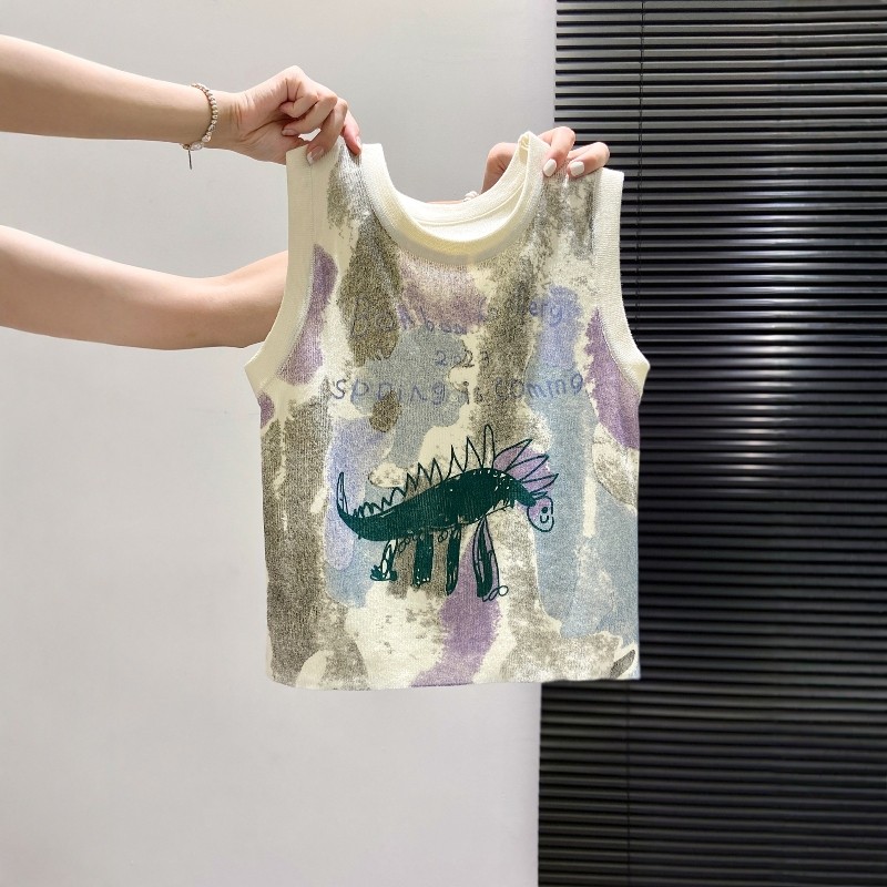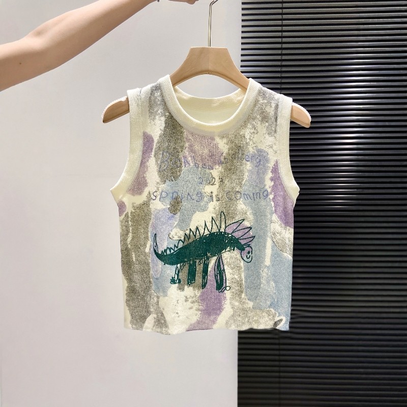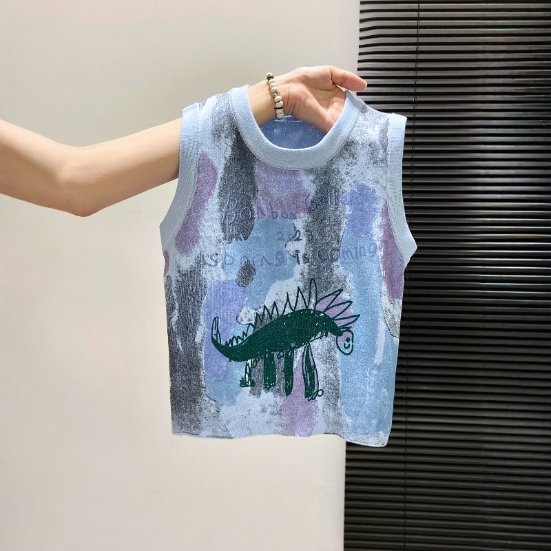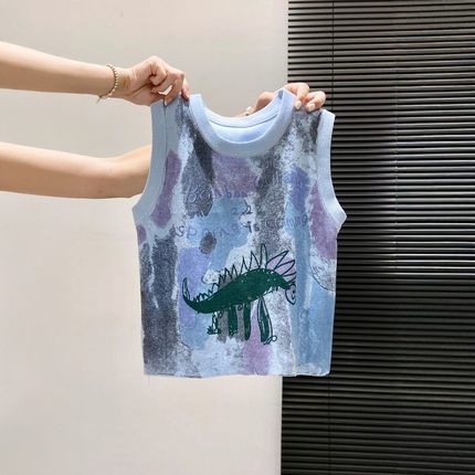 蓝色涂鸦吊带背心女夏泰式多巴胺深圳南油冰丝针织无袖外穿小上衣