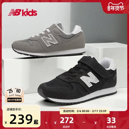 Newbalance nb官方童鞋 4-14岁中大童秋格雷系灰时尚运动鞋373