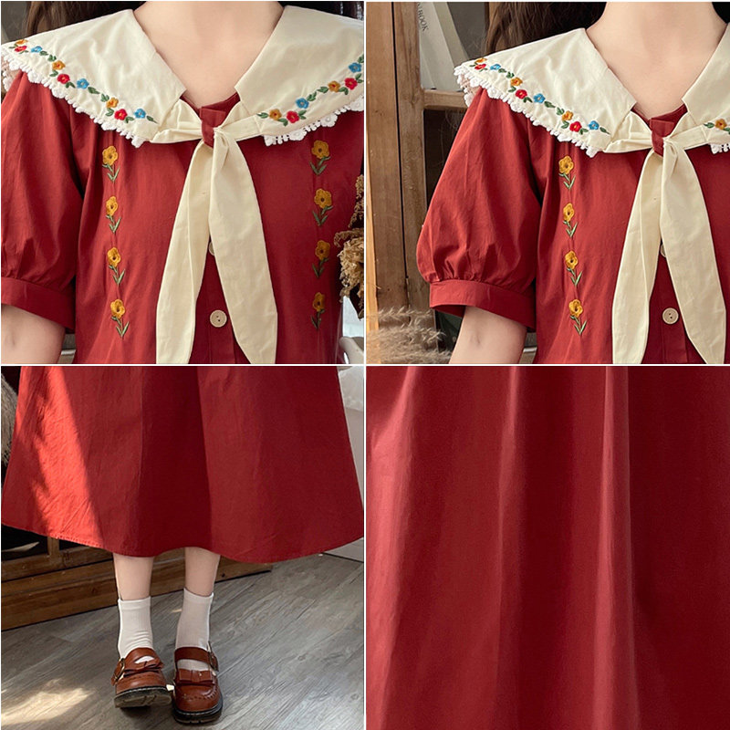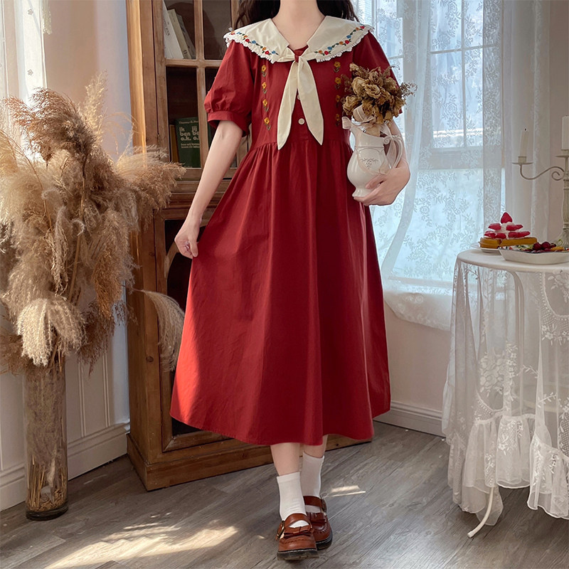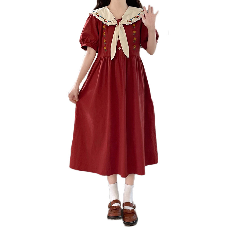 日系甜美泡泡袖连衣裙少女夏装2025新款初中高中学生宽松中长裙子