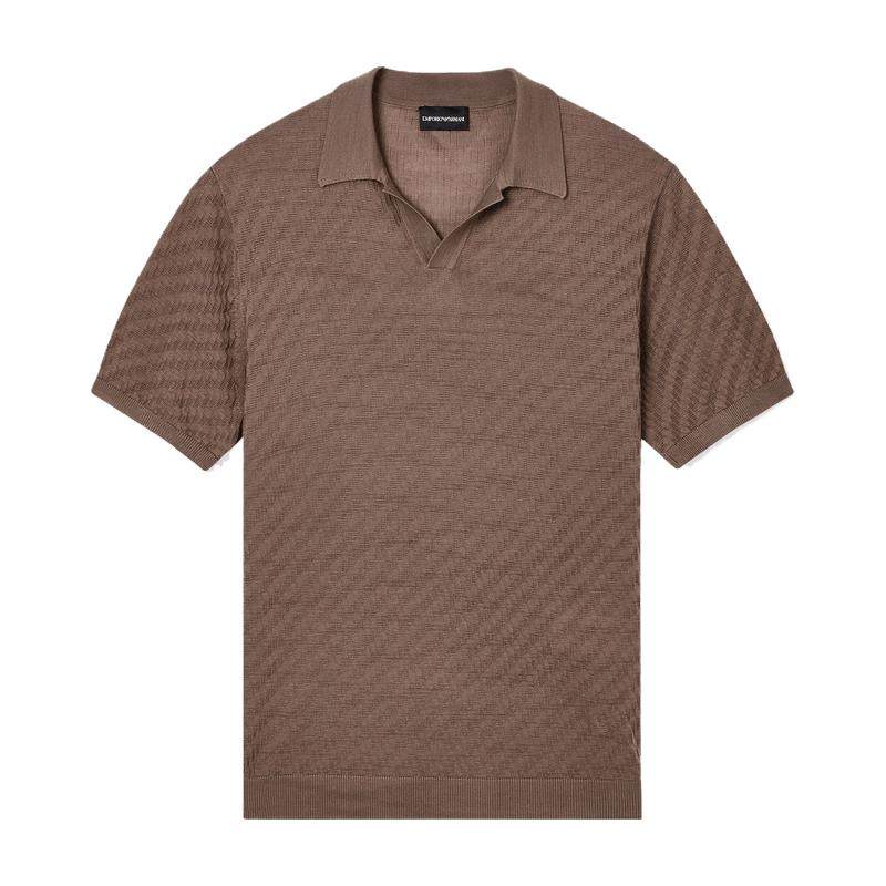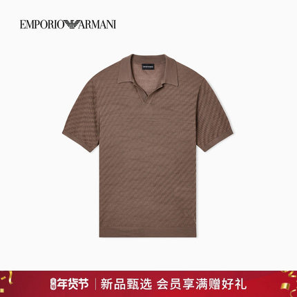 EMPORIO ARMANI/阿玛尼26年春季新款男士翻领短袖提花针织衫官方