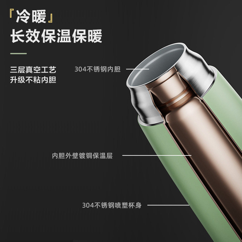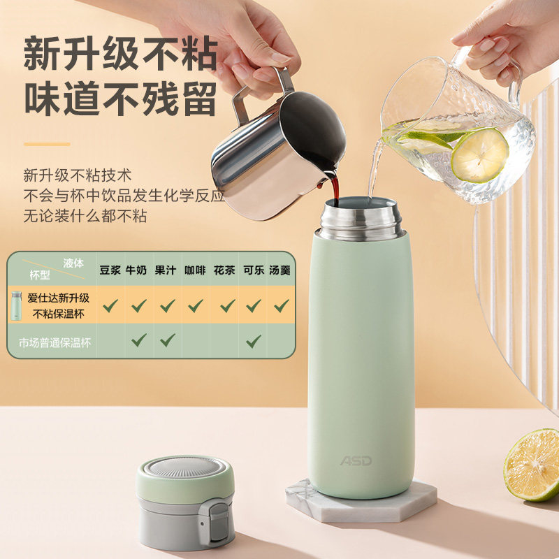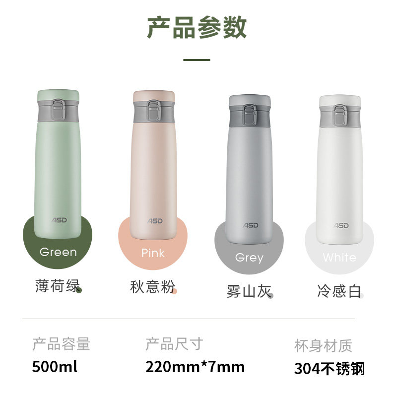 爱仕达不粘内胆保温杯304不锈钢便携式大容量保温保冷弹跳杯子