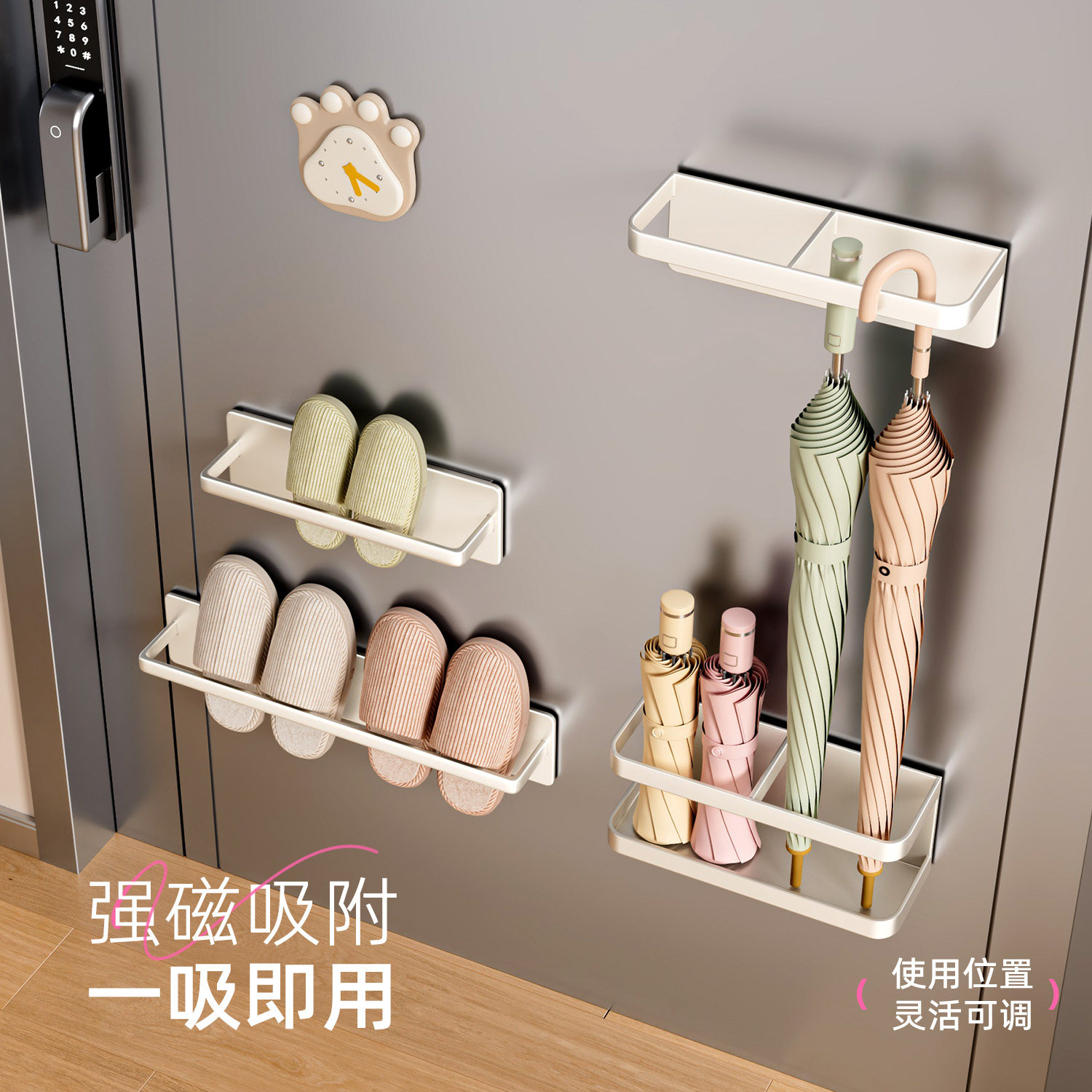 磁吸置物架入户门后玄关收纳钥匙帽子挂钩门上雨伞架磁吸置物套装