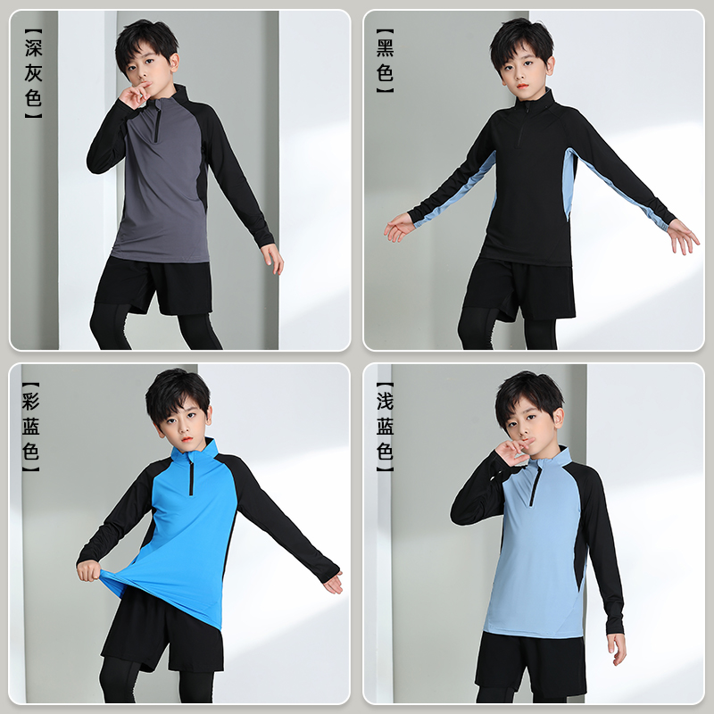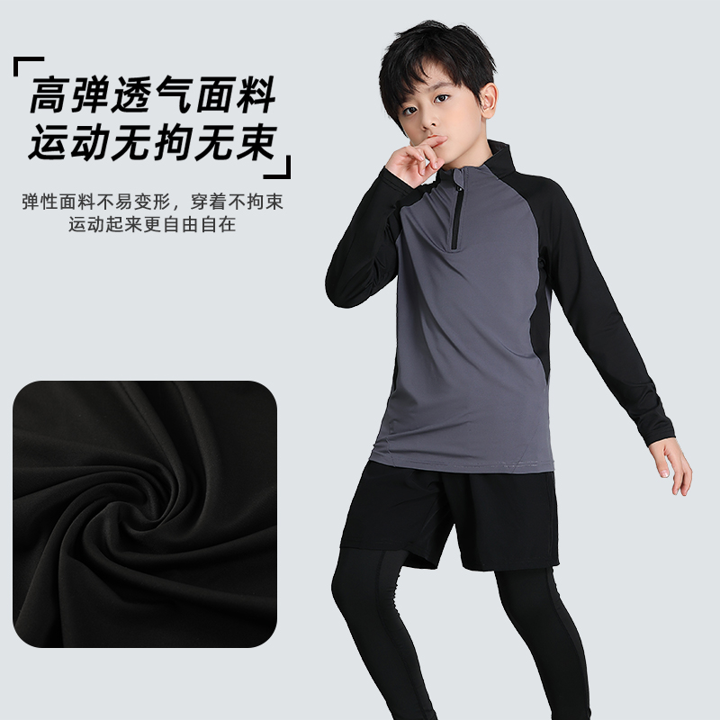 儿童紧身衣三件套训练服男孩健身服长袖篮球服打底速干运动套装