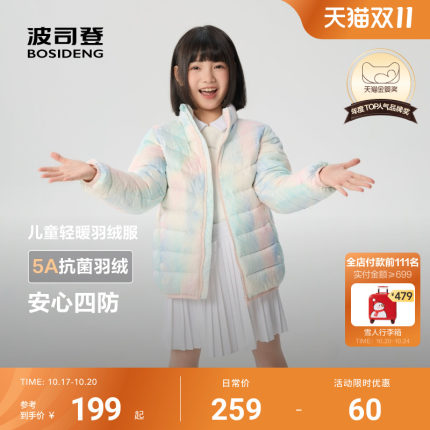 波司登儿童羽绒服女童立领轻薄羽绒服儿童外套四防抗菌25年秋新品