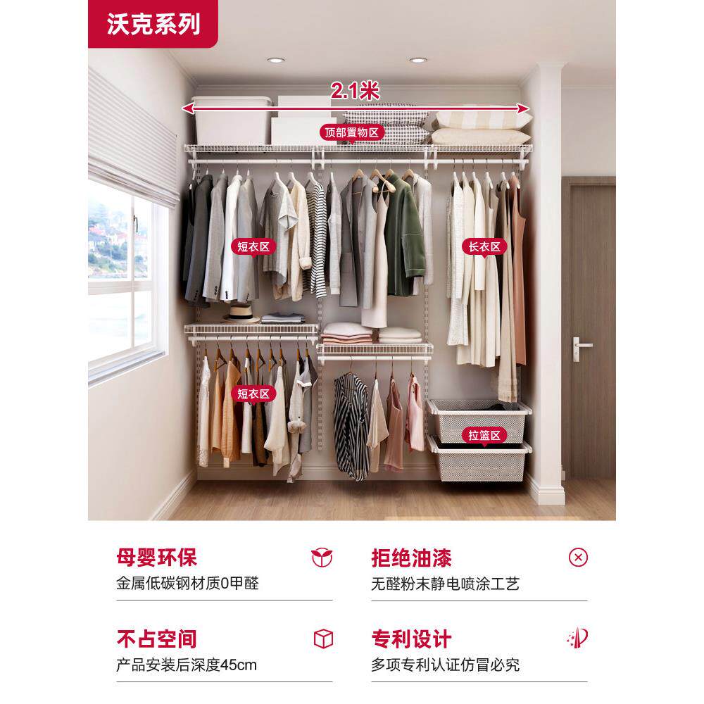 铂耐衣帽间定制小户型开放式整体衣柜步入式储物间2.1米砌墙衣柜