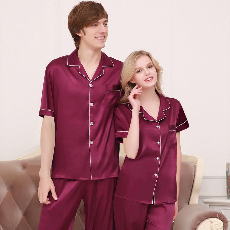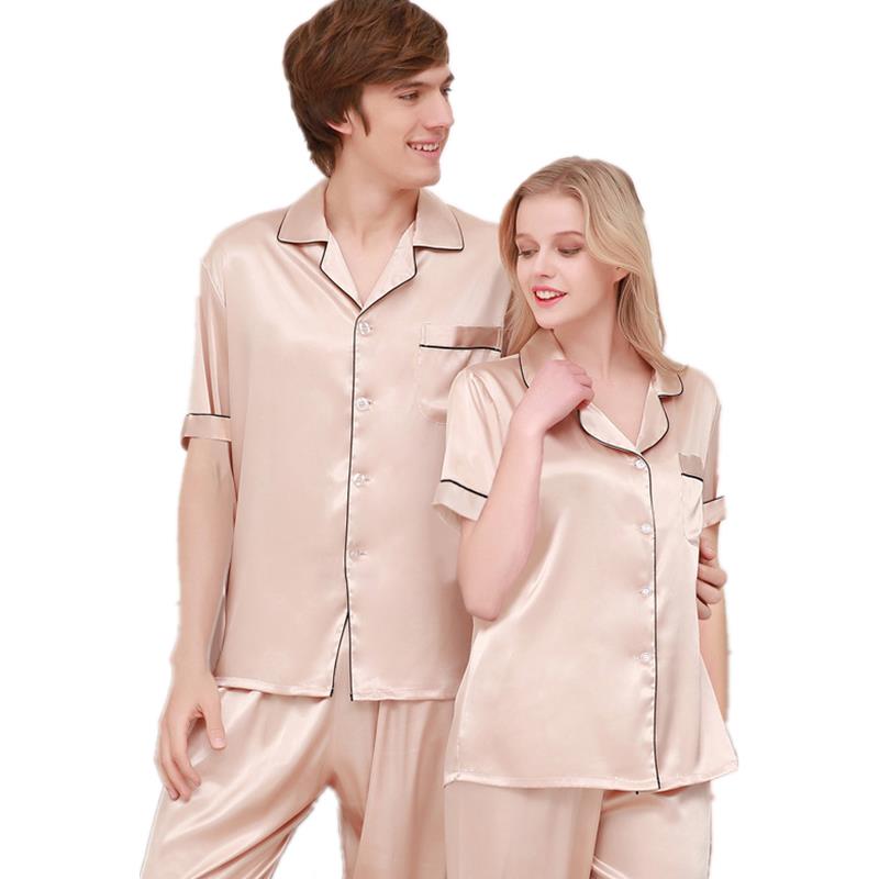 DGVV真丝情侣睡衣男女高档100%蚕丝短袖长裤本命年家居服两件套装