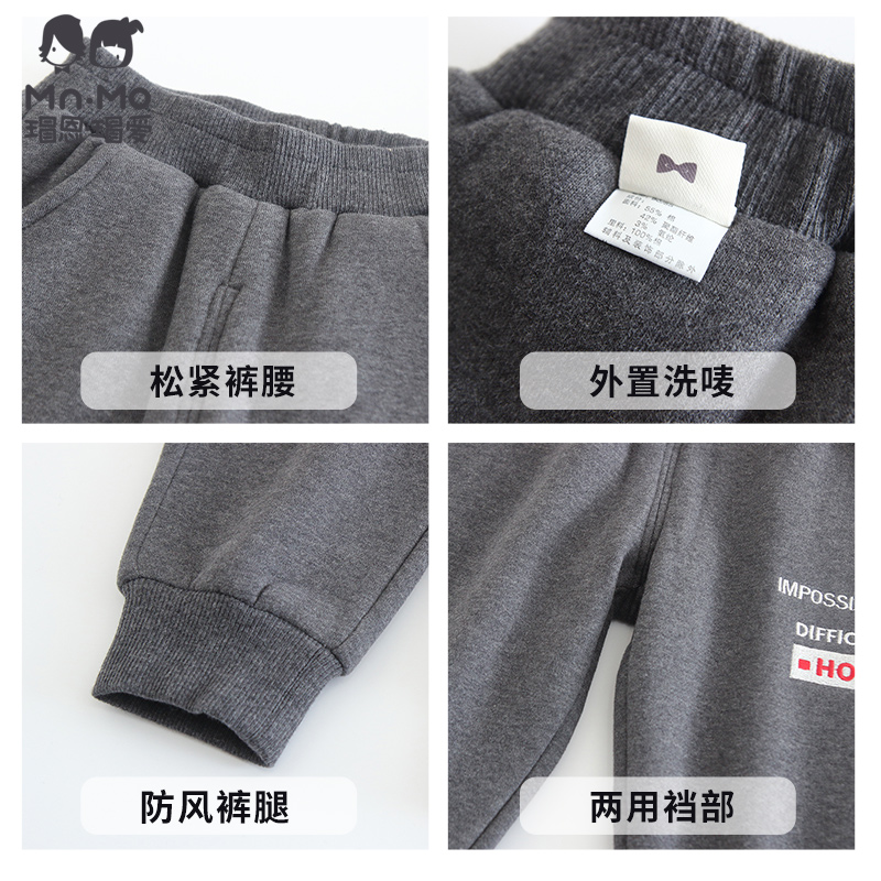 瑁恩瑁爱男童长裤秋冬双层保暖卫裤纯棉里层运动裤子休闲潮童
