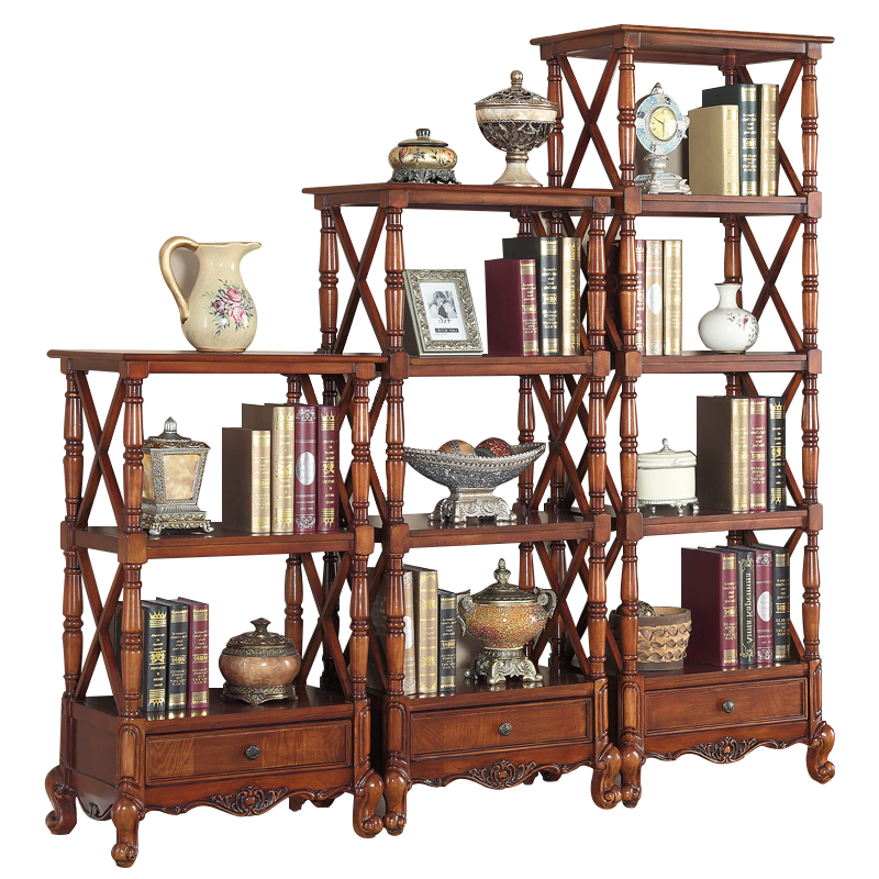 美式实木书架置物架组合书柜落地 欧式博古架客厅家用展示架书橱