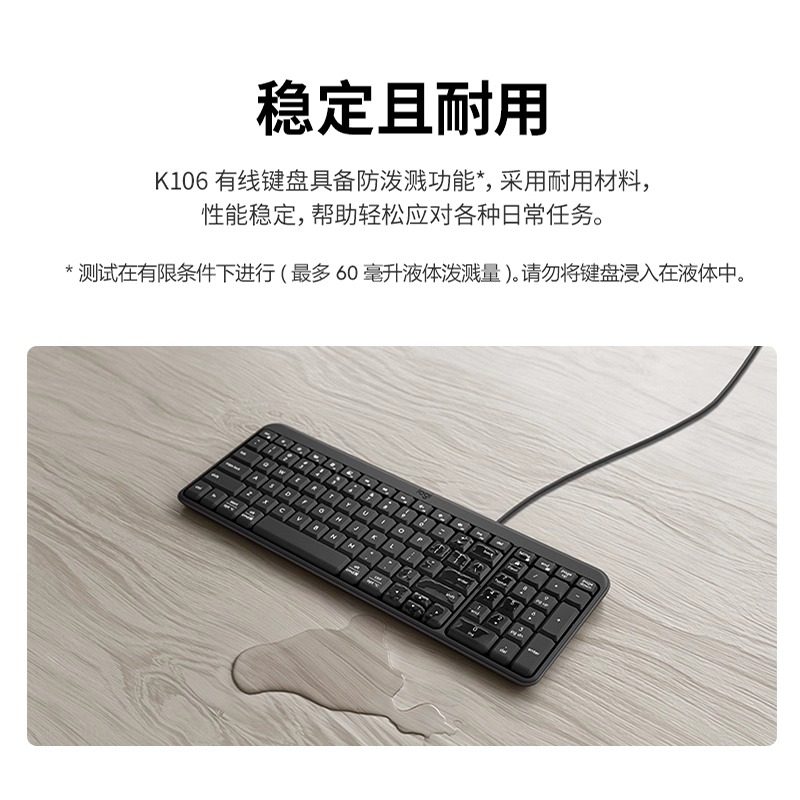 罗技K106有线薄膜键盘 办公商务专用笔记本台式电脑打字usb家用
