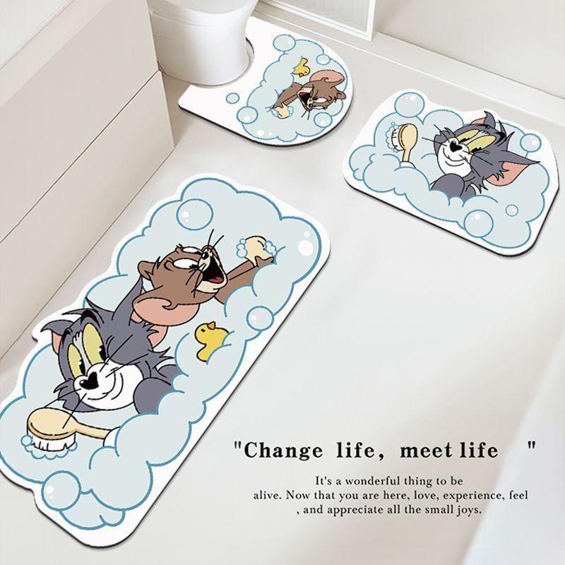 猫和老鼠浴室地垫卫生间耐脏免洗三件套厕所吸水速干卫浴防滑垫子