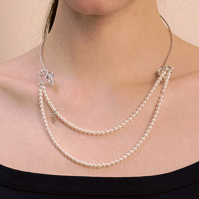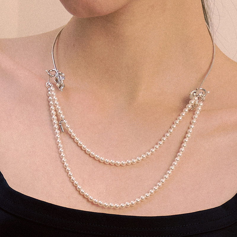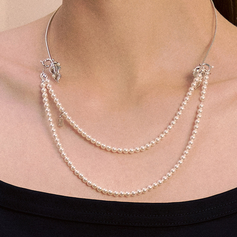 LILIFAN莉莉梵 叶片珍珠双层项链 高级感精致珍珠项链 生日礼物