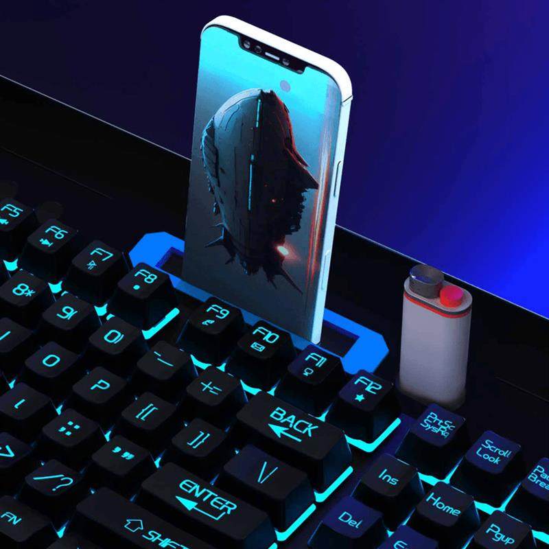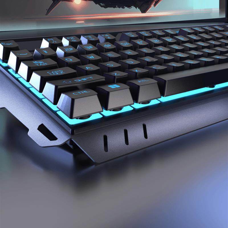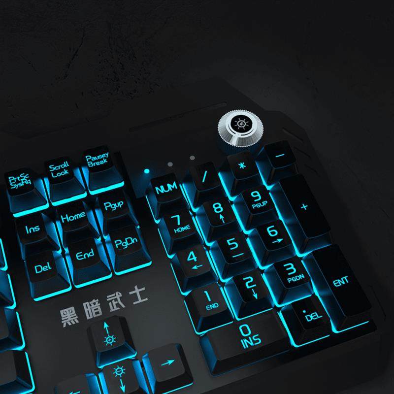 旋钮机械手感金属键盘办公打字家用游戏发光有线USB台式电脑无冲