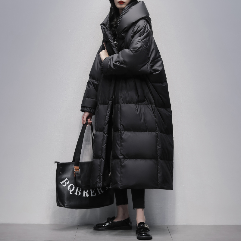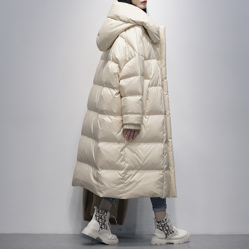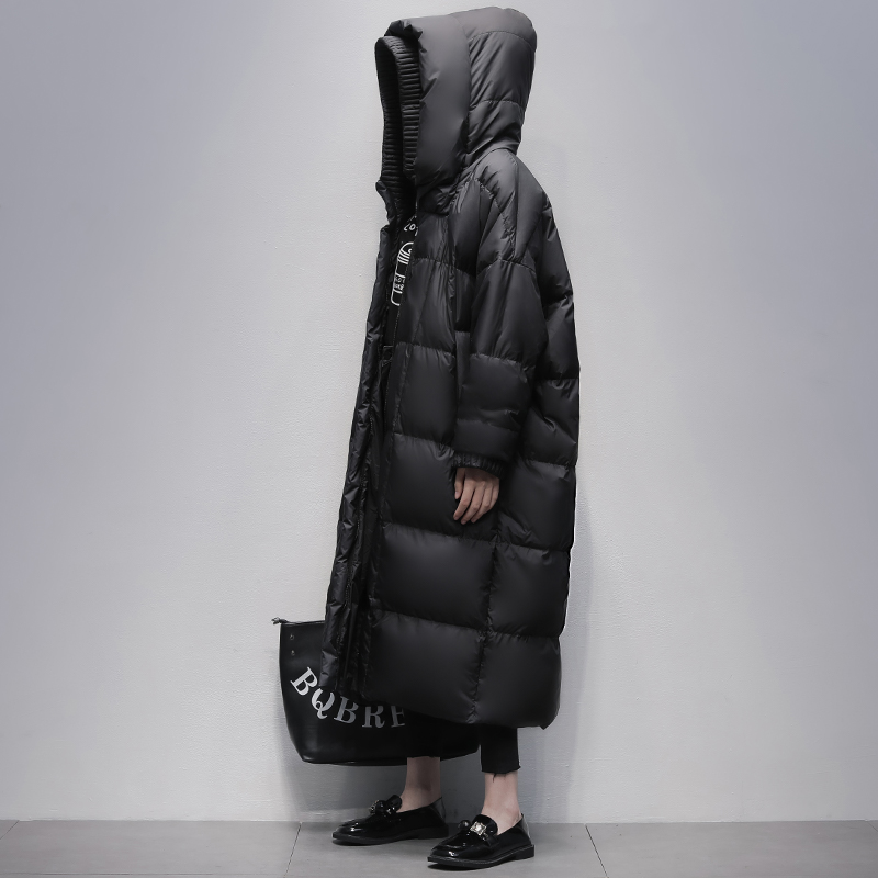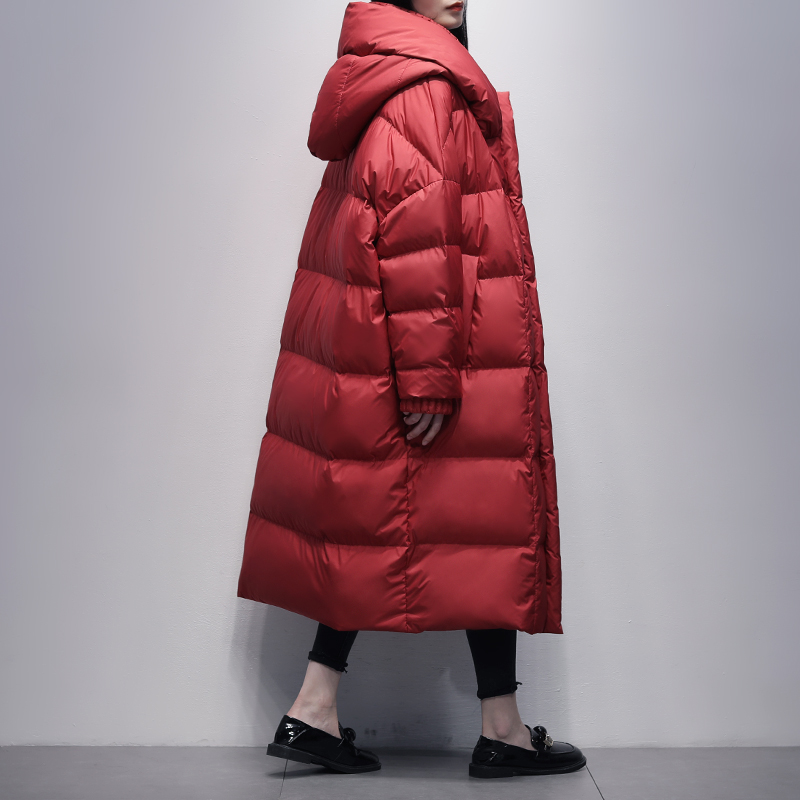 红色长过膝羽绒服女中长款2025冬装新款白鸭绒连帽宽松加厚外套潮