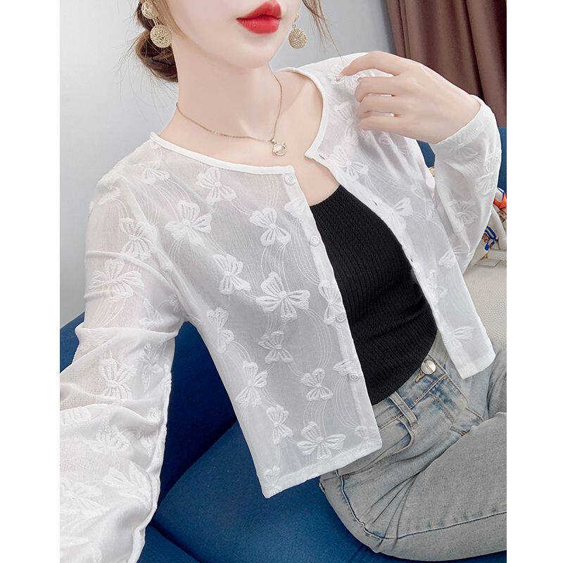 新中式冰丝防晒衣女夏季薄款旗袍外搭蕾丝披肩开衫配吊带裙子罩衫
