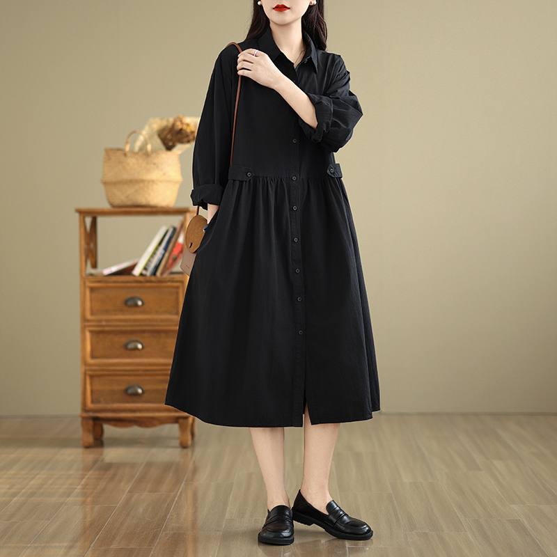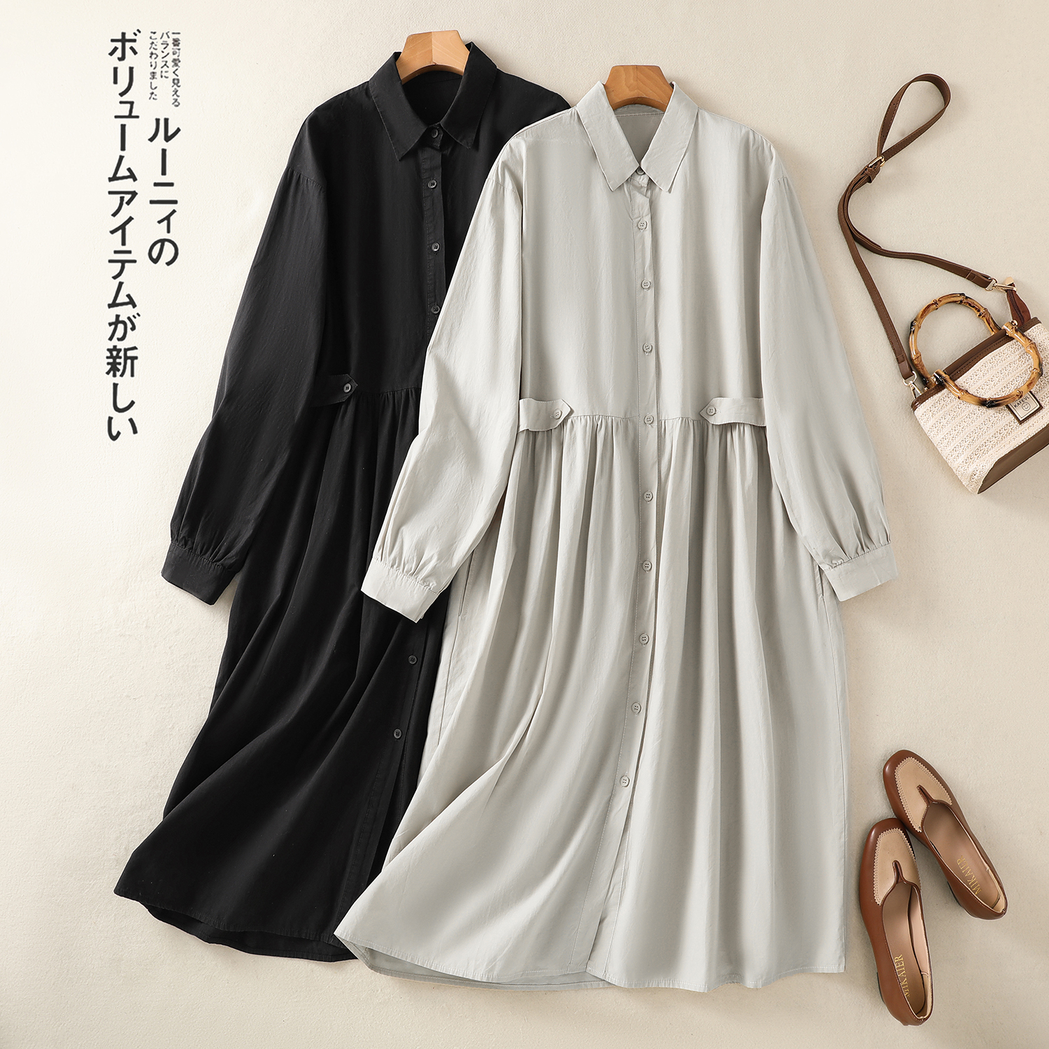 慵懒风宽松显瘦棉质衬衫连衣裙