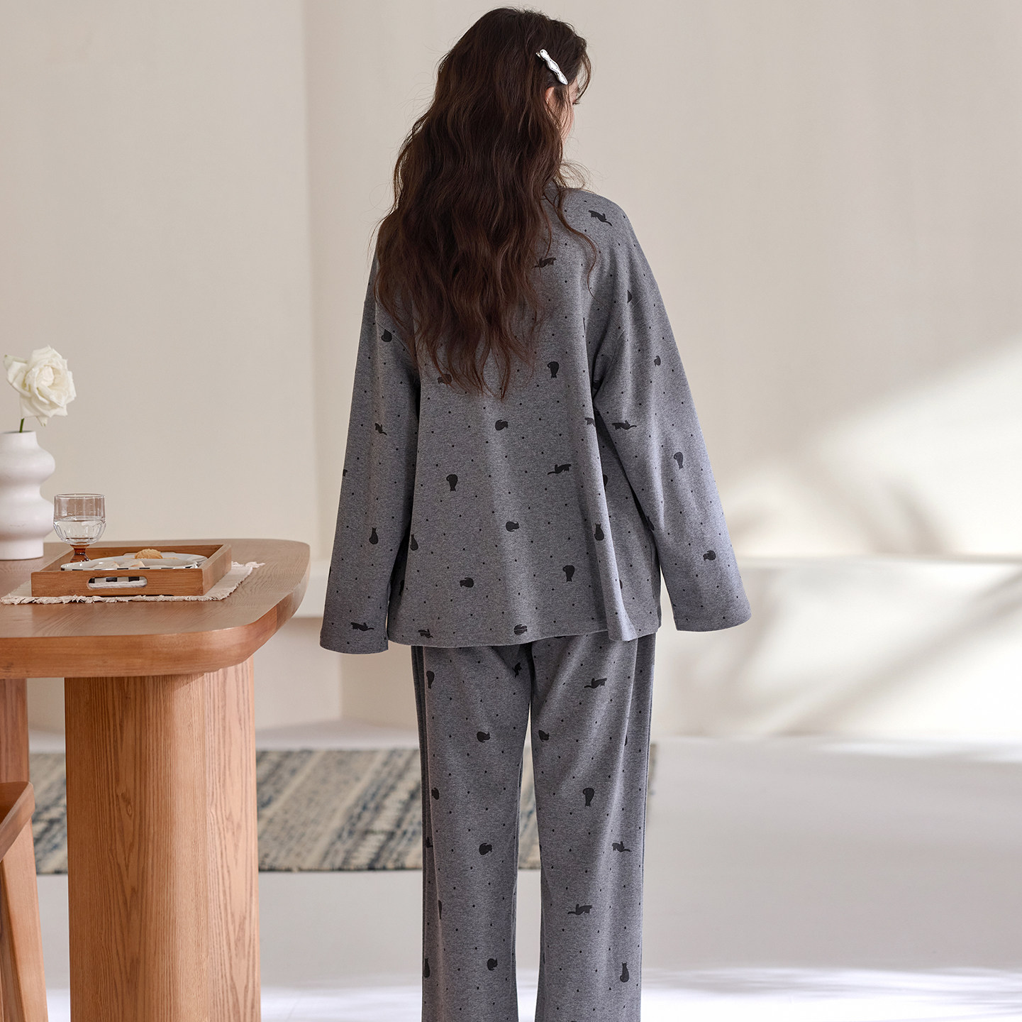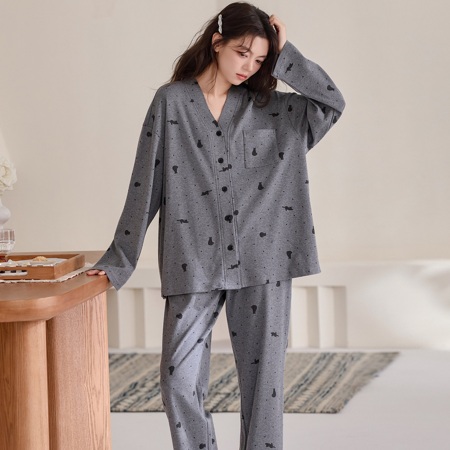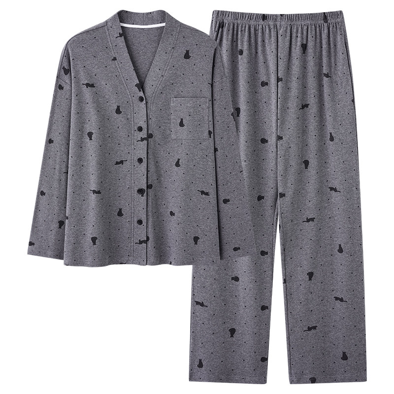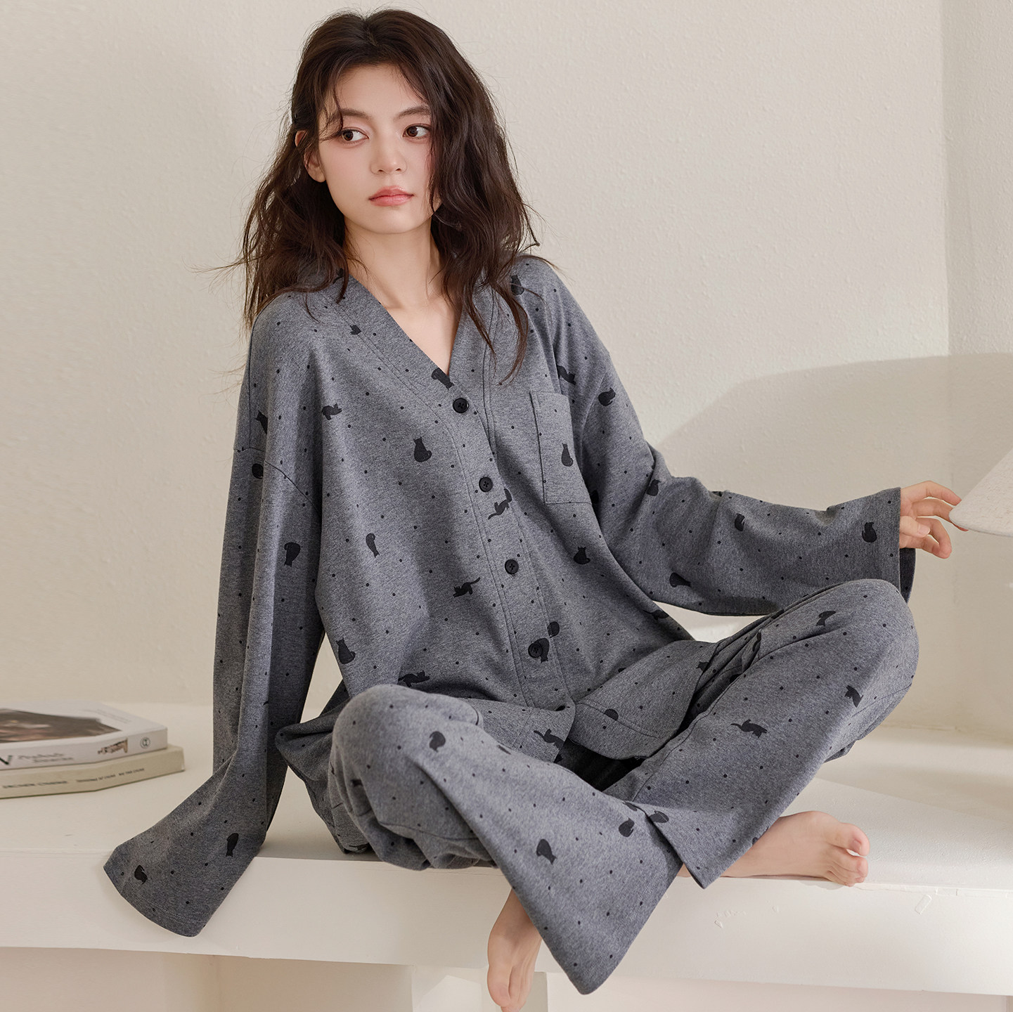 春秋季女款睡衣100%全棉长袖开衫韩版小个子家居服可外穿纯棉套装