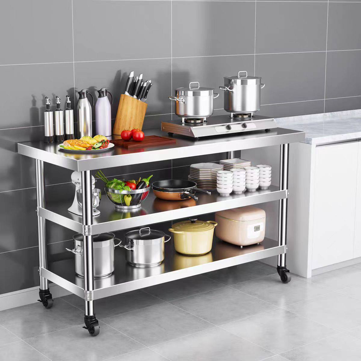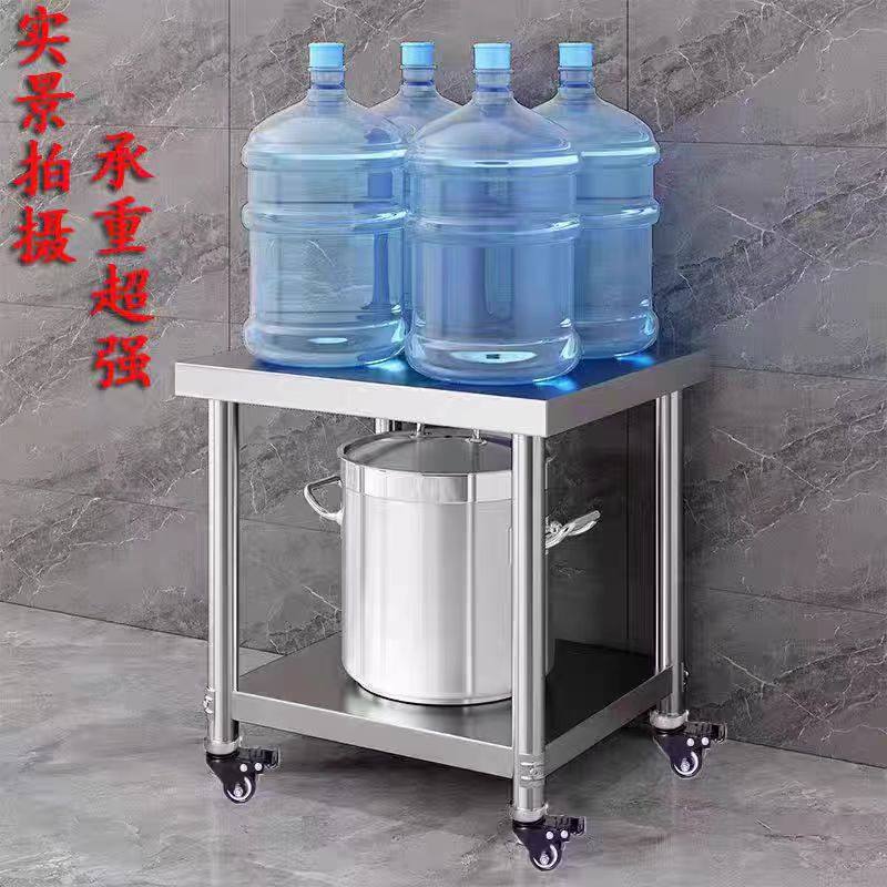 可移动工作台加厚不锈钢操作台微波炉烤箱收纳带轮子切菜台