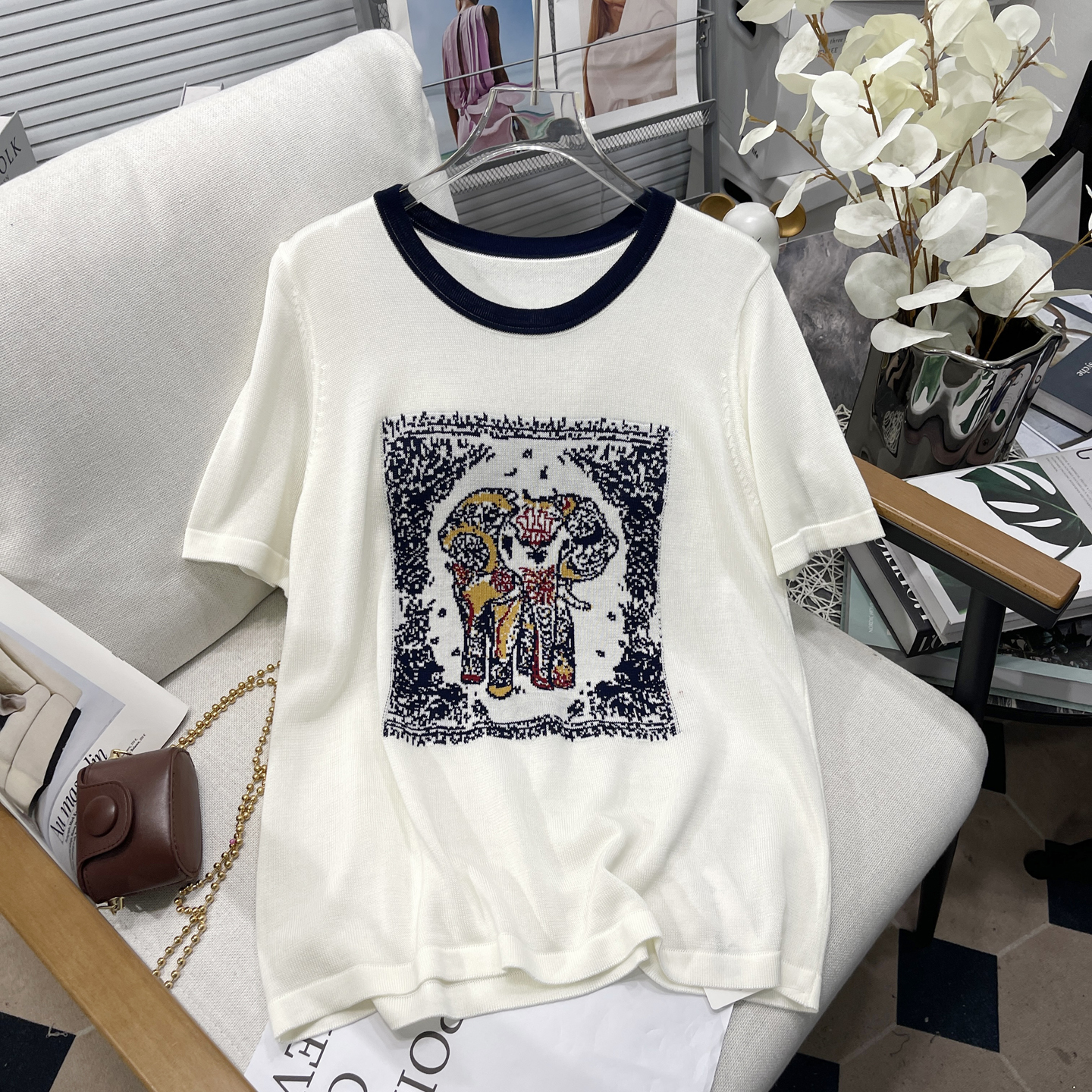 胡子叔大码女装夏季新款撞色竹节麻针织T恤女胖mm宽松薄款上衣潮