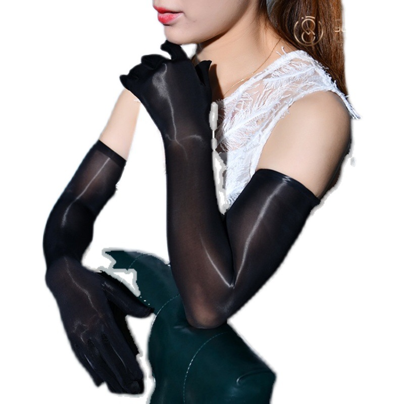 马油五指丝袜长手套男女分指手臂套夏季油光超薄新娘五指长手套