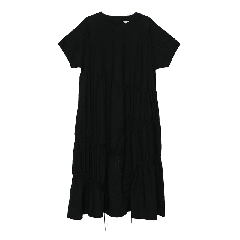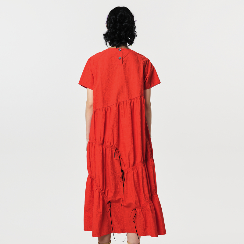 【商场同款】MOVEUP幻走2024春季新款纯棉抽褶泡泡布设计师连衣裙