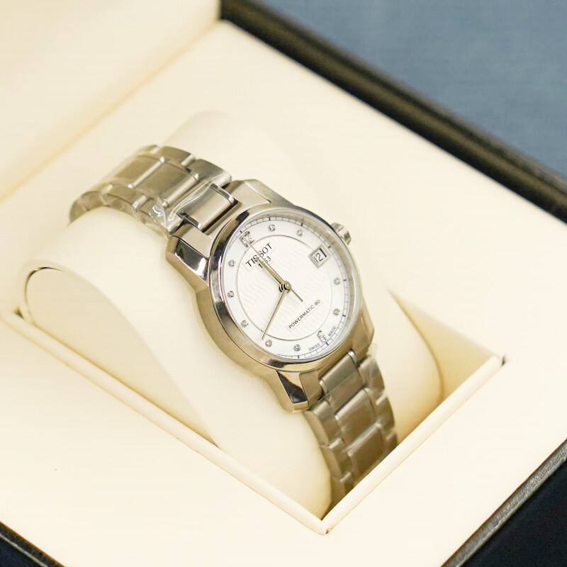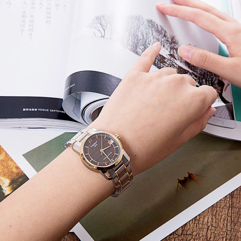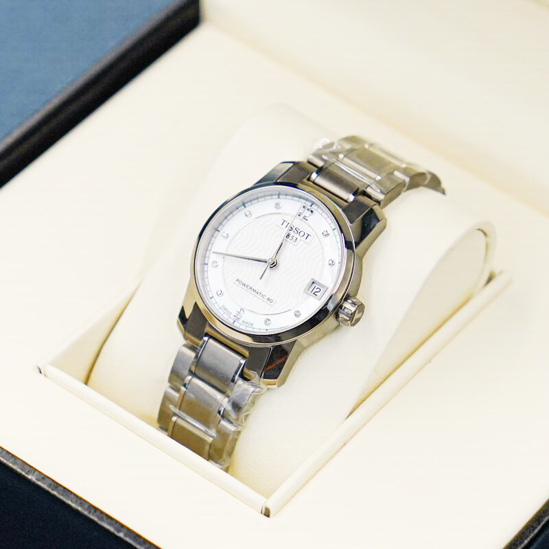 瑞士天梭钛金属轻薄商务80机芯机械女士款手表送礼物贝母钻刻表