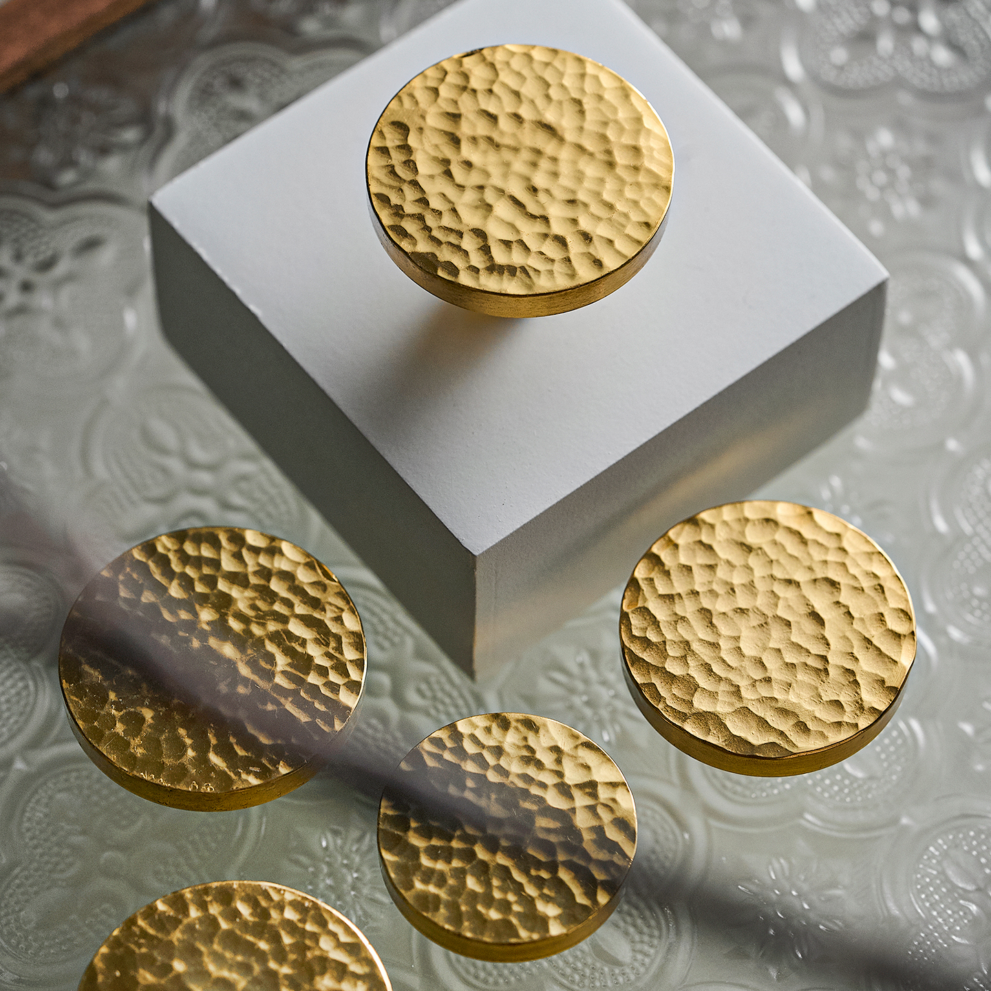 锤纹黄铜拉手现代简约轻奢抽屉橱柜衣柜门纯铜单孔金色圆形小把手