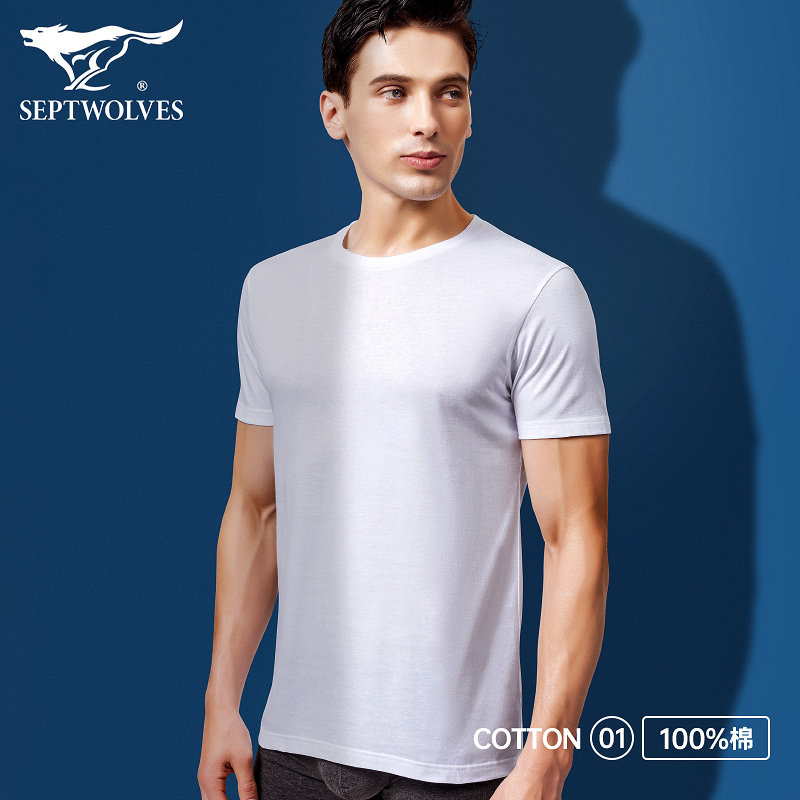 七匹狼男士短袖白色Tt恤纯棉打底内衣背心夏季半袖老头衫男款汗衫