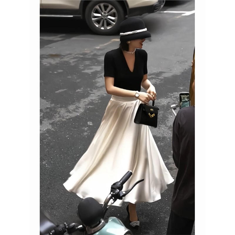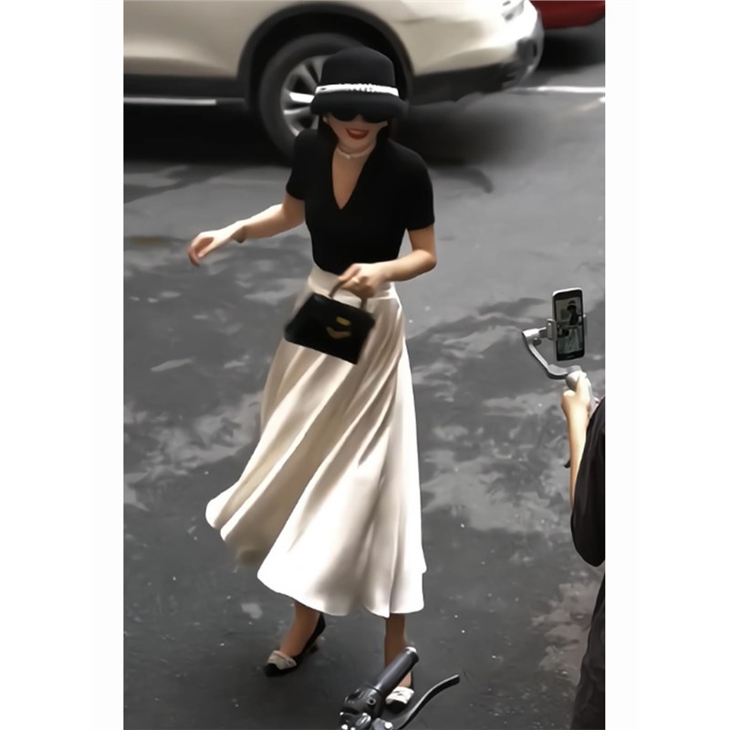 2025新款名媛气质长裙小香风高腰显瘦白色连衣裙两件套夏季