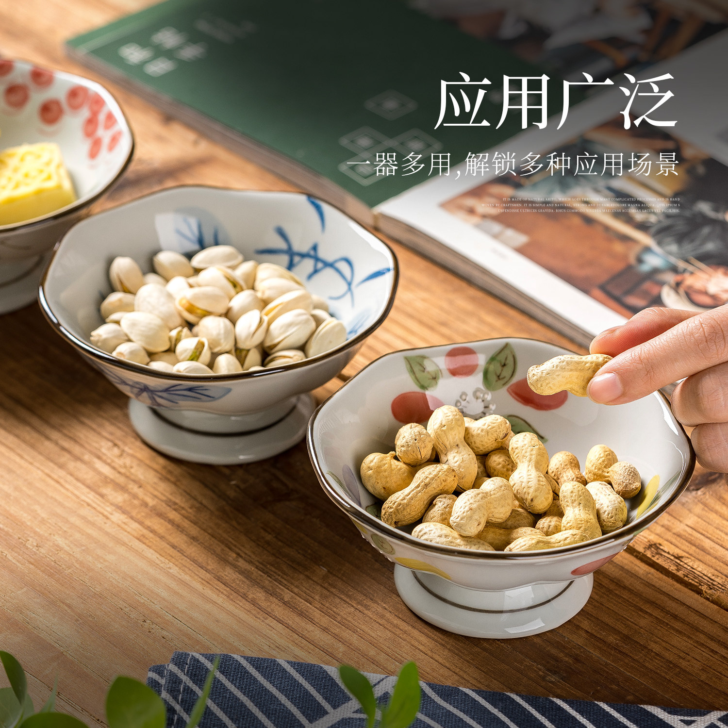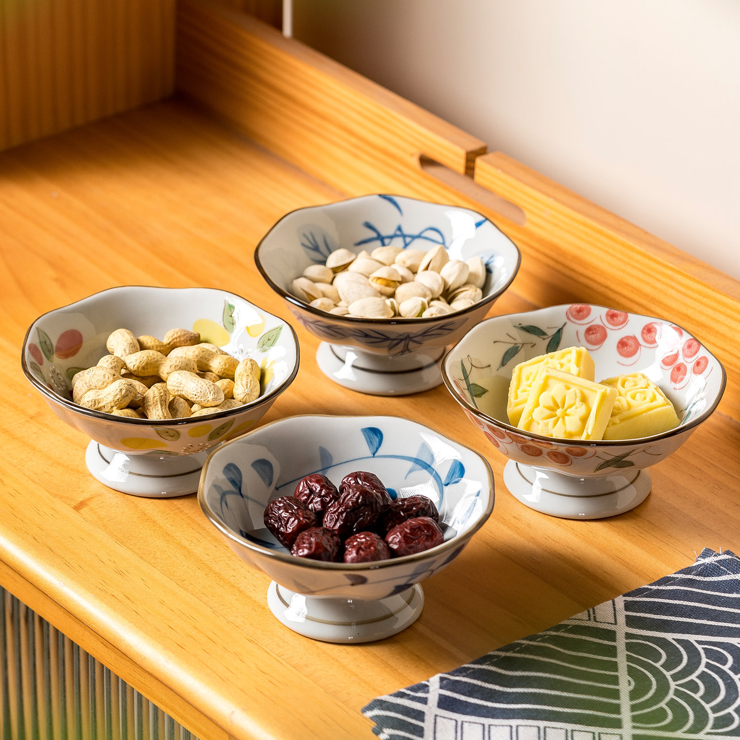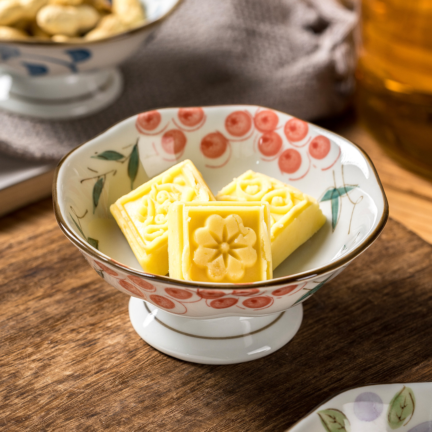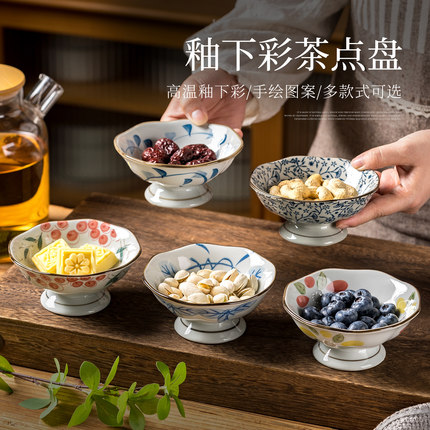 中式高脚干果碟家用陶瓷点心盘