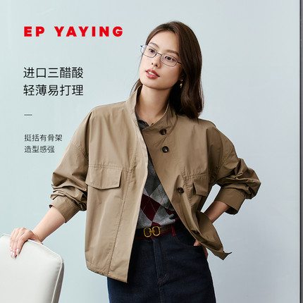 EP雅莹2025秋冬新款女装 短款风衣 宽松休闲工装夹克外套1217A
