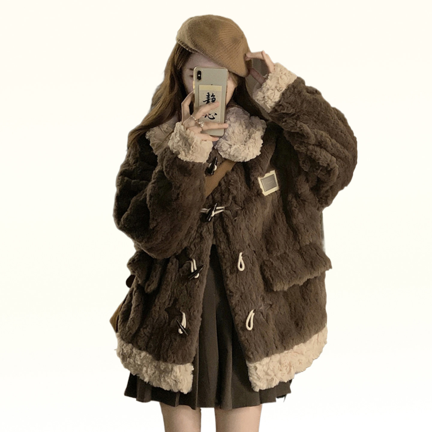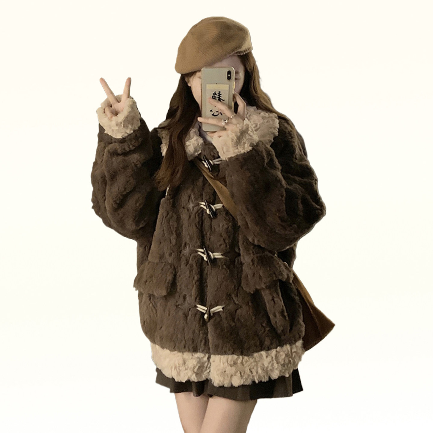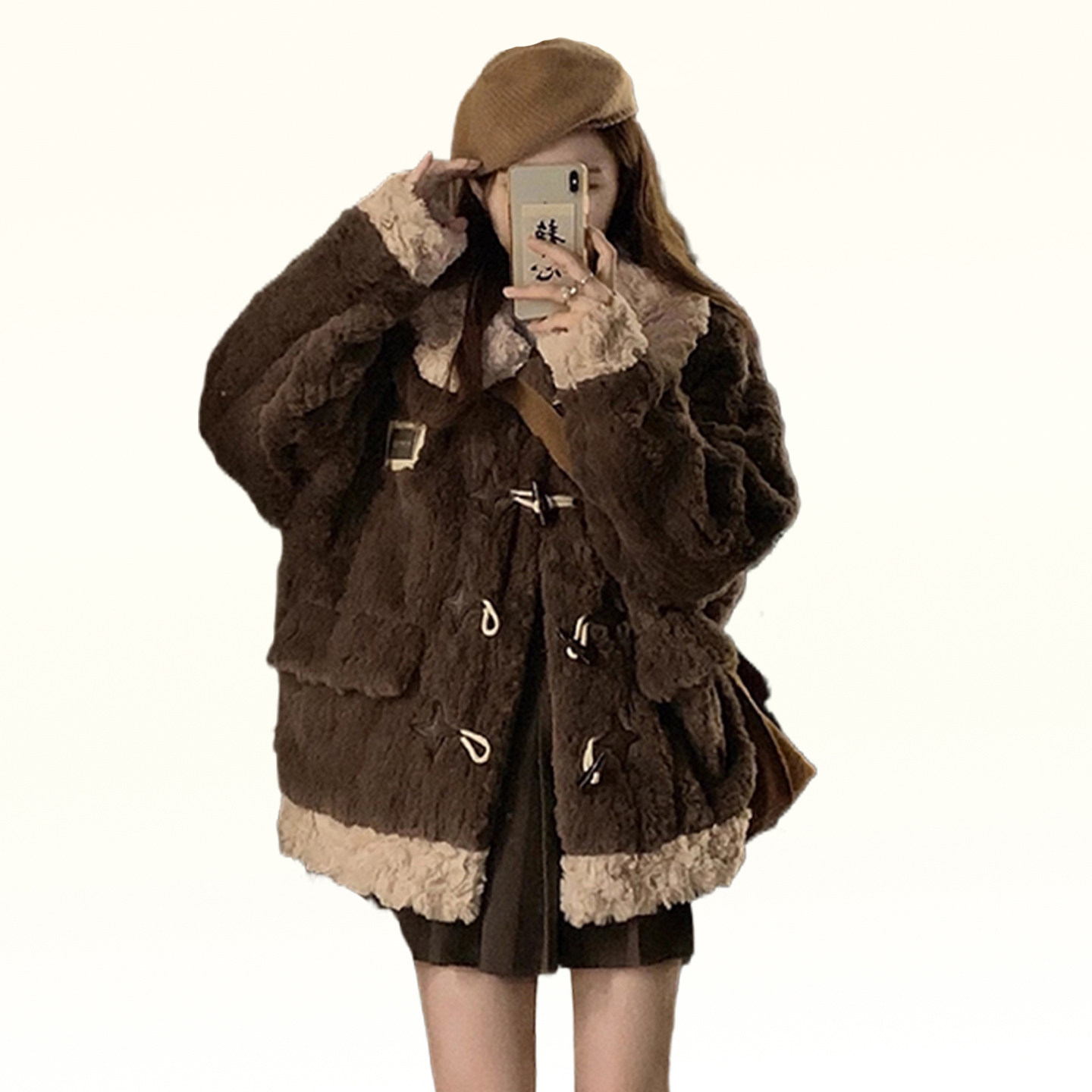 特大码胖mm韩版牛角扣加厚棉服上衣女冬季防寒保暖羊羔毛开衫外套