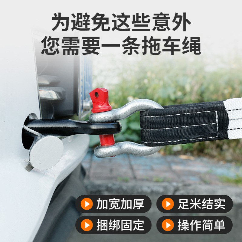 汽车拖车绳6吨5米拉车绳钩越野车用自驾游加粗尼龙牵引救援安全绳