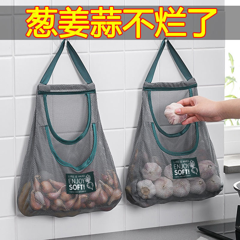 厨房多功能果蔬挂袋姜蒜收纳神器壁挂蒜头生姜大蒜收纳袋透气网袋